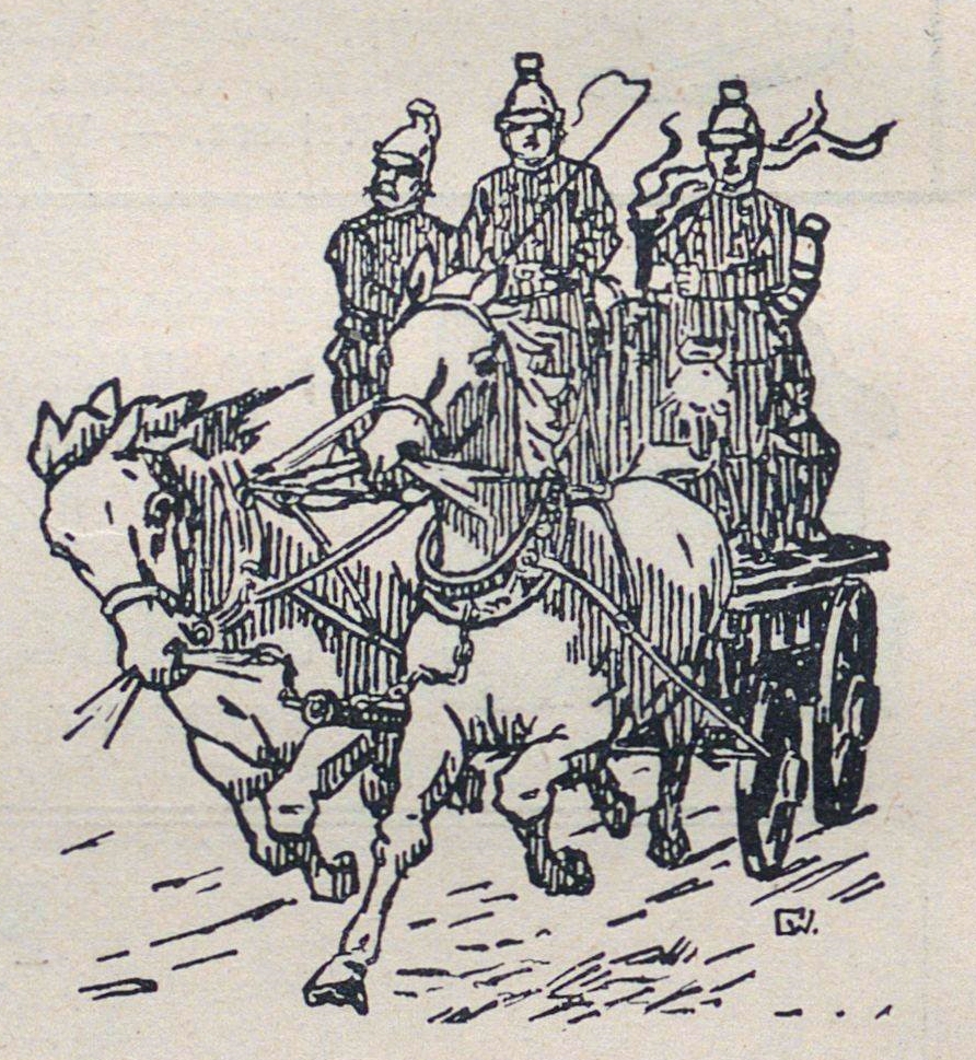 Choć płonący budynek położony był zaledwie około 500 metrów od remizy, to nie obyło się bez problemów. Największą bolączką i wówczas, i przez następne kilkadziesiąt lat był brak własnych koni niezbędnych do ciągnięcia strażackiego wozu z sikawką. Prywatne konie były użyczane przez mieszkańców miasta, nie zawsze należących do stowarzyszenia. Możliwe, że i tym razem do pożaru wysłane zostały konie należące do jednego z założycieli straży, mieszkającego w pobliżu Piotra Wasiewicza (1862-1909).